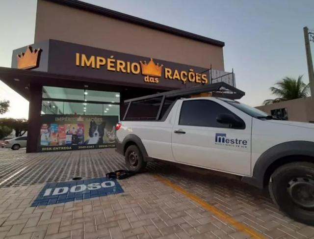 Fachada desenvolvida para o Império das Rações, com acabamento em ACM e comunicação visual de alto impacto, valorizando a marca e garantindo maior visibilidade ao negócio.
